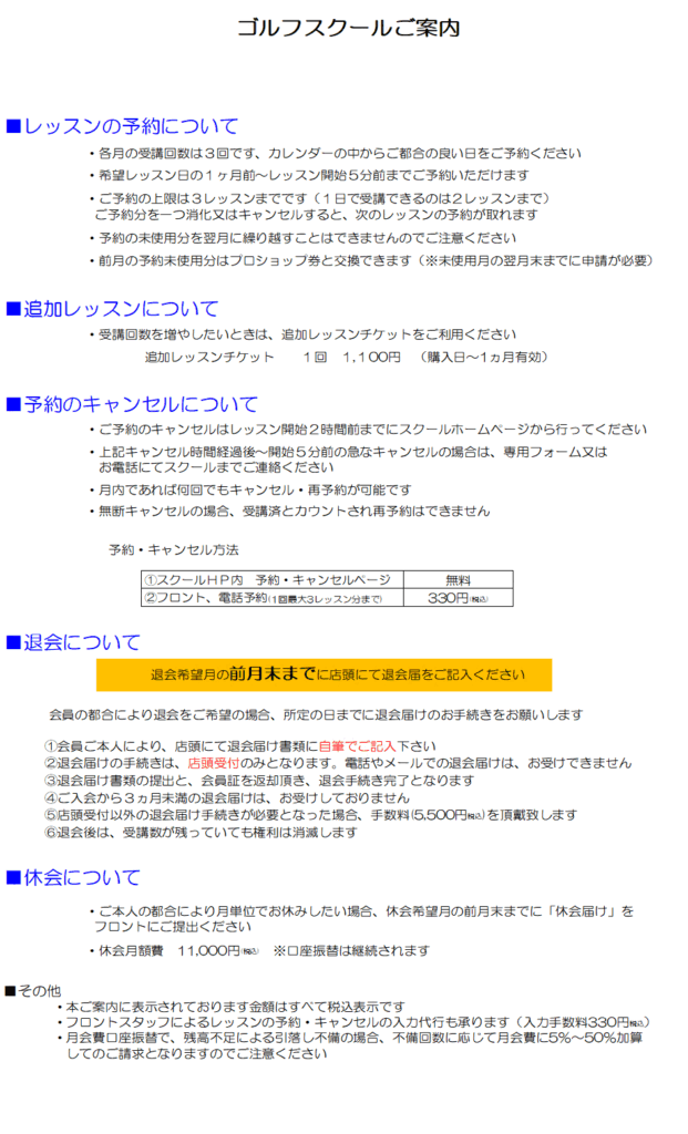 HIROゴルフスクール規約2024.9